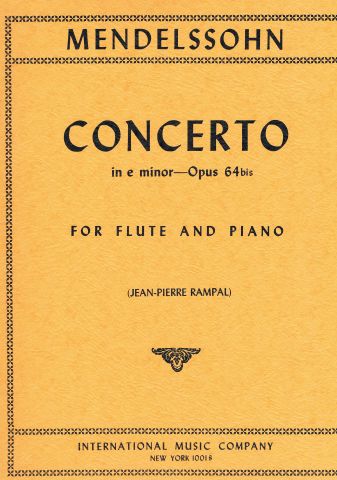 Titolo: Concerto in E minor - Op.64 bis Codice: IMC2851 Autore: Mendelssohn Felix Casa Editrice: International Music Company Strumento: Flauto e Pianoforte ISMN/ISBN: - Prezzo: € 22,00 Disponibilità: