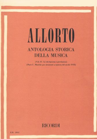 Autore:Allorto Riccardo Titolo:Antologia storica della musica vol.2(Le età barocca e preclassica)Parte prima(Musiche per strumenti a tastiera del secolo XVII) Pagine:80 Editore:Ricordi