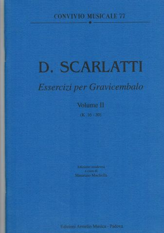 Pianoforte - ClavicembaloAutore:Domenico Scarlatti(1685-1757)Titolo:Essercizi per Gravicembalo, vol. 2(K 16-30)Pagine:62Edizione secondo le fonti originali a cura di Maurizio Machella Editore:Armelin