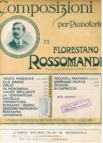 Rossomandi Florestano Composizioni per pianoforte di Florestano Rossomandi Pensiero Nostalgico(a Vincenzo Scaramuzza) Professore al R.Conservatorio di Musica,San Pietro a majella di Napoli. Difficoltà:5° e 6° grado. Edizioni: Simeoli