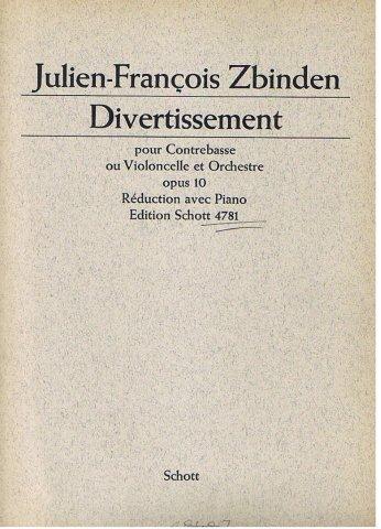 CONTRABBASSO E PIANOFORTEJULIEN - FRANCOIS ZBINDEN DIVERTISSEMENT POUR CONTREBASSE OU VIOLONCELLO ET ORCHESTRE OPUS 10 REDUCTION AVEC PIANO PAR L'AUTEUR.