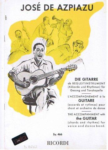 ChitarraDe Azpiazu JosèGuitarrenschule der begleitung ( Accordi e ritmi )The accompaniment whit the guitar8chords and rhythms)for voice and dance band.