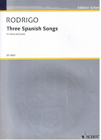 Three Spanish Songs SGST/GIT - medium voice and guitar - Spanish - English English version: Glendinning, Nigel composer: Rodrigo, Joaquín text arranger: Kamhi, Victoria pagine: 8 Edizioni:Schott