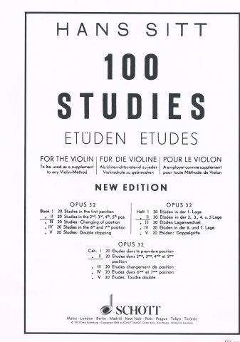 Titolo:100 Studies, op. 32 20 Studies in the 2nd, 3rd, 4th and 5th position violin composer: Sitt, Hans Heft 2 Editore: Ernst Eulenburg & Co. GmbH pagine: 20