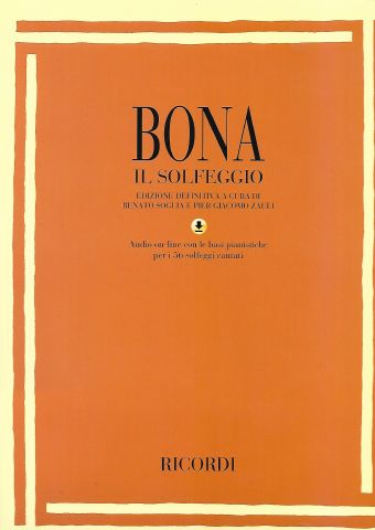 BONA,IL SOLFEGGIO è la nuova proposta RICORDI per lo studio del Solfeggio e della Teoria Musicale. Questa nuova revisione unisce all’impostazione didattica solida e collaudata applicata da Pasquale Bona fin dal 1870, una moderna onometodologia applicata alla teoria e al solfeggio,che porta costantemente l’alunno a capire prima di fare, ad applicare sempre i concetti e le conoscenze non solo attraverso il solfeggio parlato, ma anche con la pratica di quello cantato e ritmico, che vanno sempre di pari passo con le nozioni appena imparate.